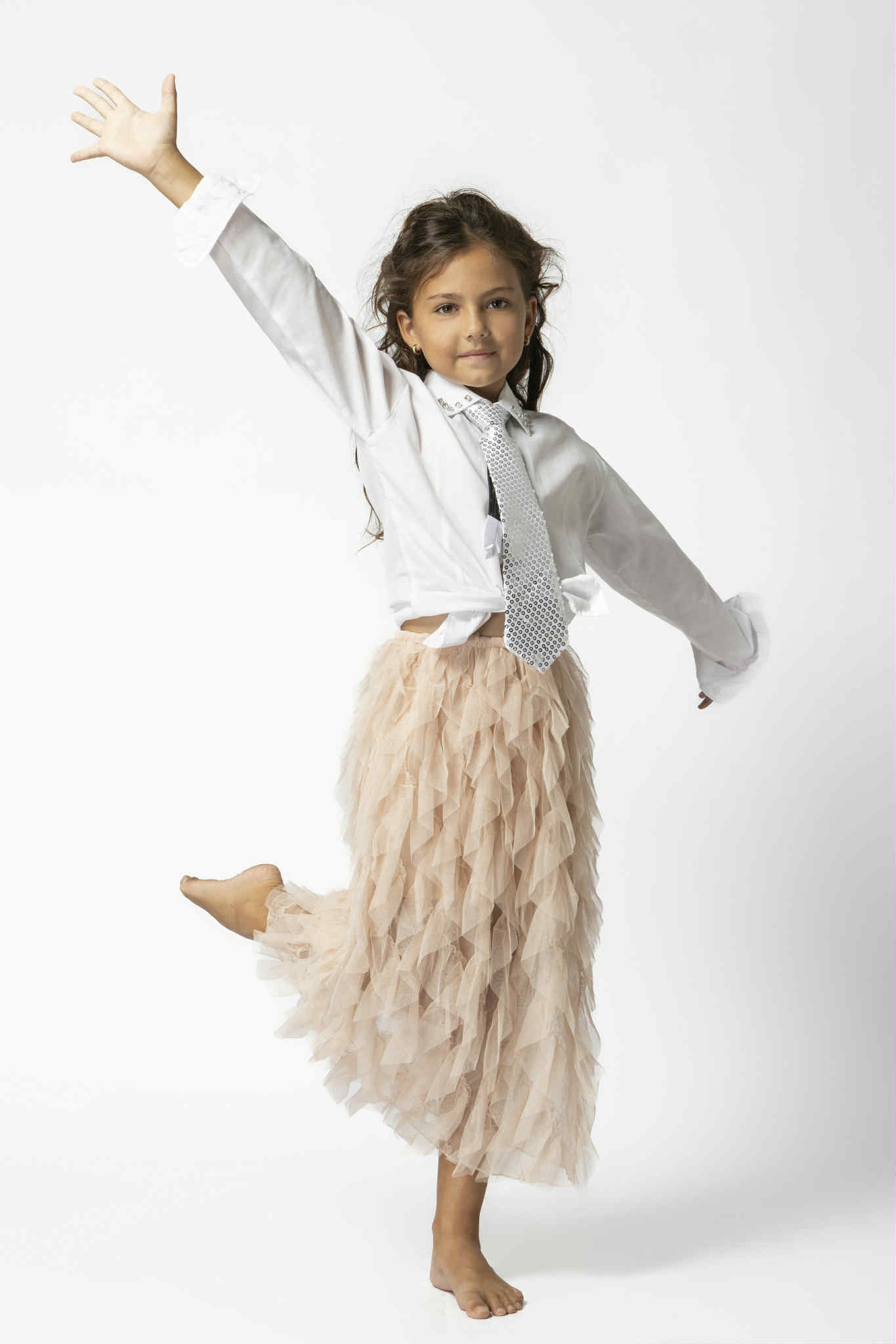 Σετ πουκάμισο και φούστα ασημή με πούπουλα και παγετα