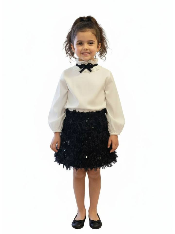 Σετ πουκάμισο με στρας στο γιακά και φούστα πούπουλα με παγετα.