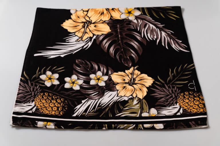 Πετσέτα θαλάσσης 100% βαμβακερή με all-over μαύρο/ώχρα τύπωμα. Συνδυάστε με ίδιο μαγιό και ντύσιμο παραλιας