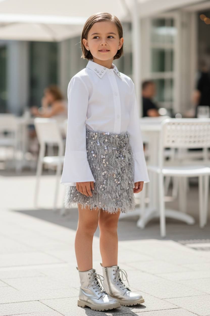 Σετ πουκάμισο με στρας στο γιακά και φούστα πούπουλα με παγετα.