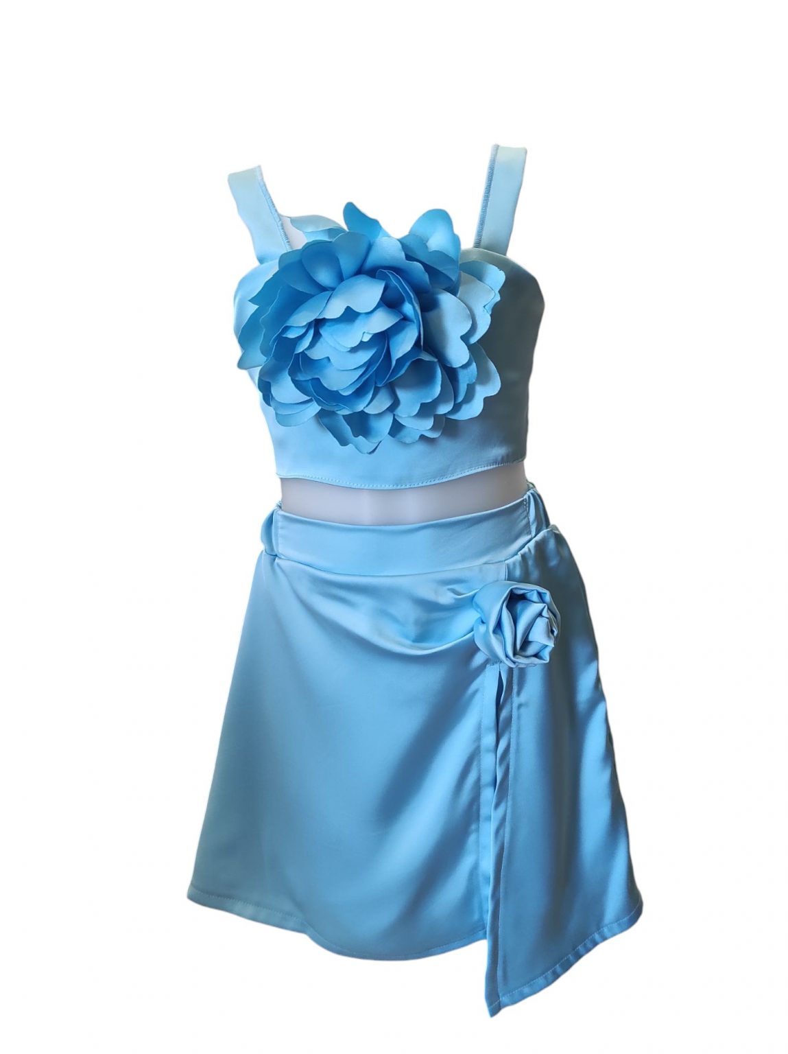 Σετ φούστα-σορτς τοπ με καρφίτσα λουλούδι γαλάζιο